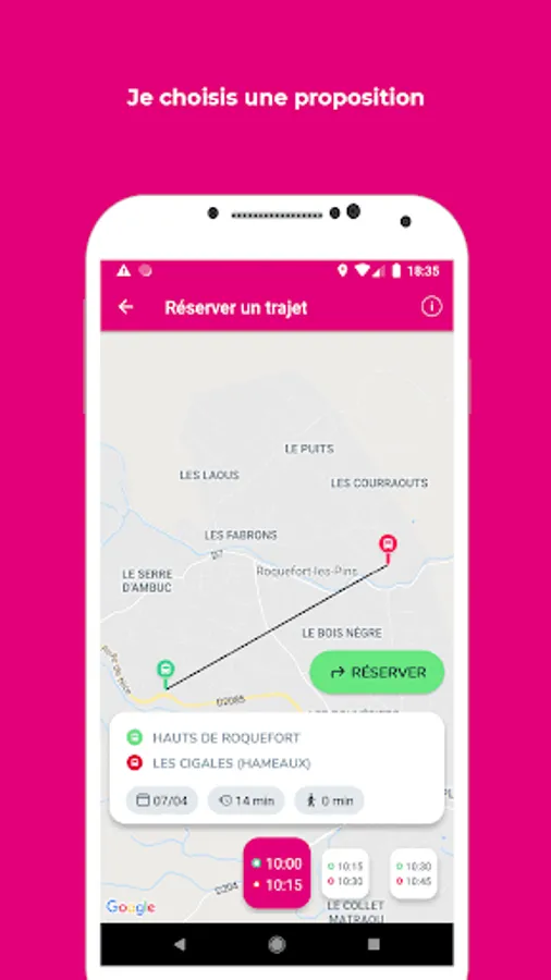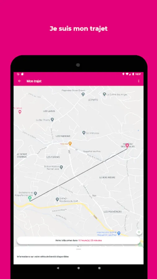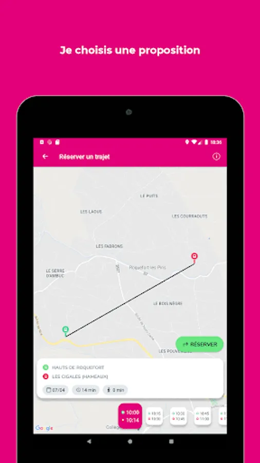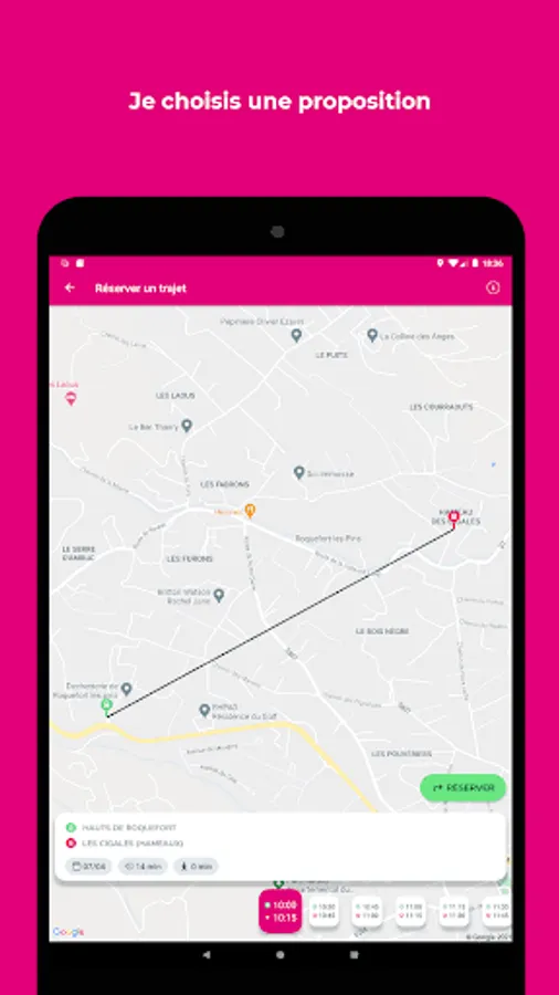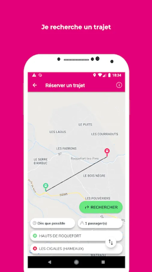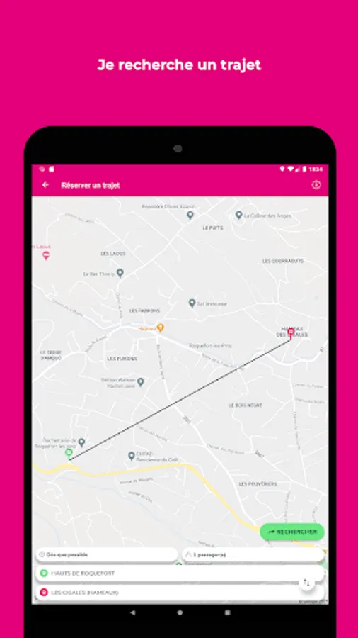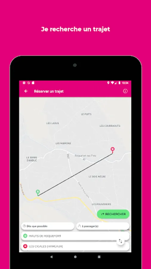 3- Search for a trip by indicating your departure and arrival address and the desired day and time. You can save some of your trips in your favorites.