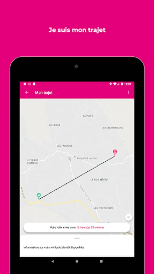 > Your trip has been booked! You can view the details of your trip on the app and track the progress of the vehicle in real time.