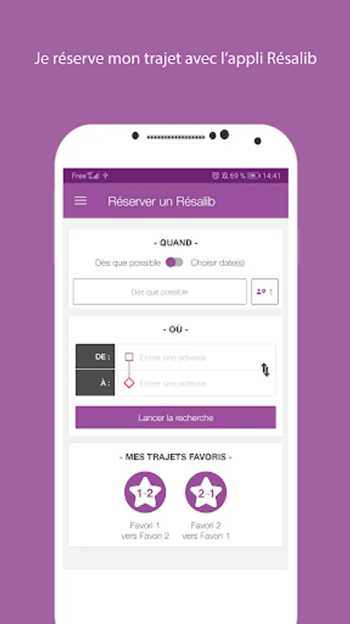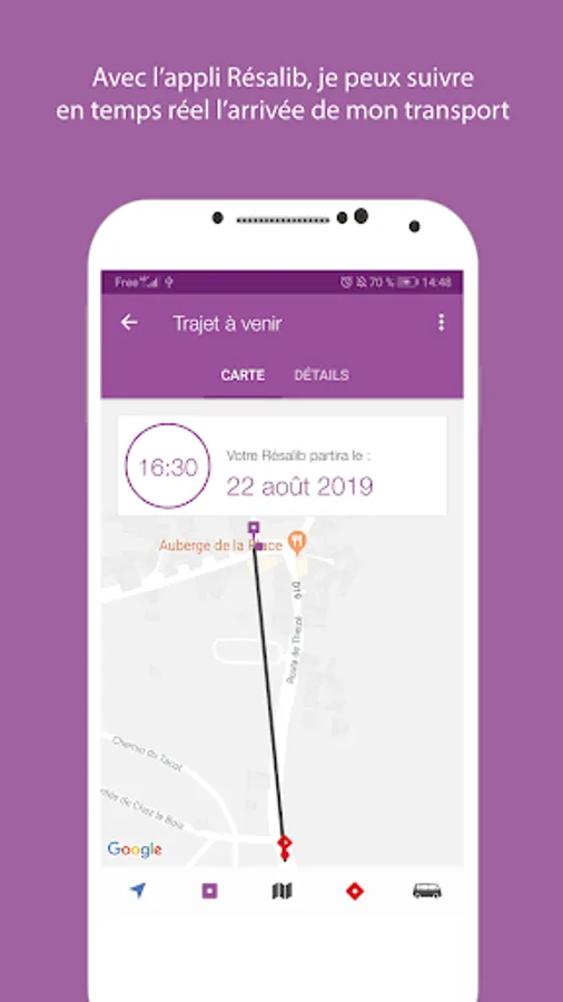 The Résalib application is the application of the public transport network Libellule, the network of the agglomeration of Villefranche-sur-Saône. The application allows you to easily book your Resalib transports. You can also follow in real time the arrival of your vehicle and note the quality of the trip.