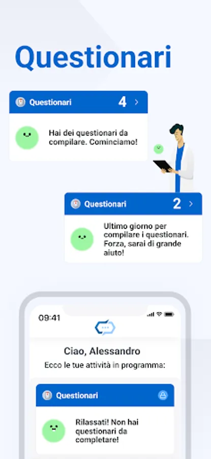 - Virtual assistant to improve engagement and support the user through a widget and empathic conversations;