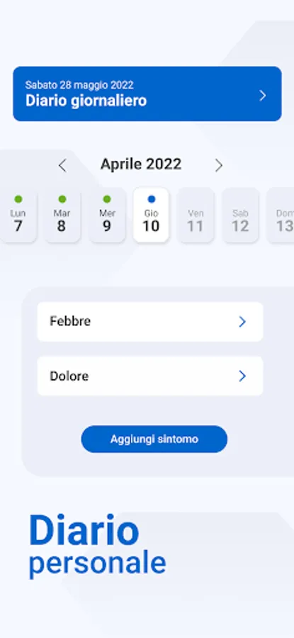 - Custom dashboard to record activities, symptom diary and appointment scheduling;