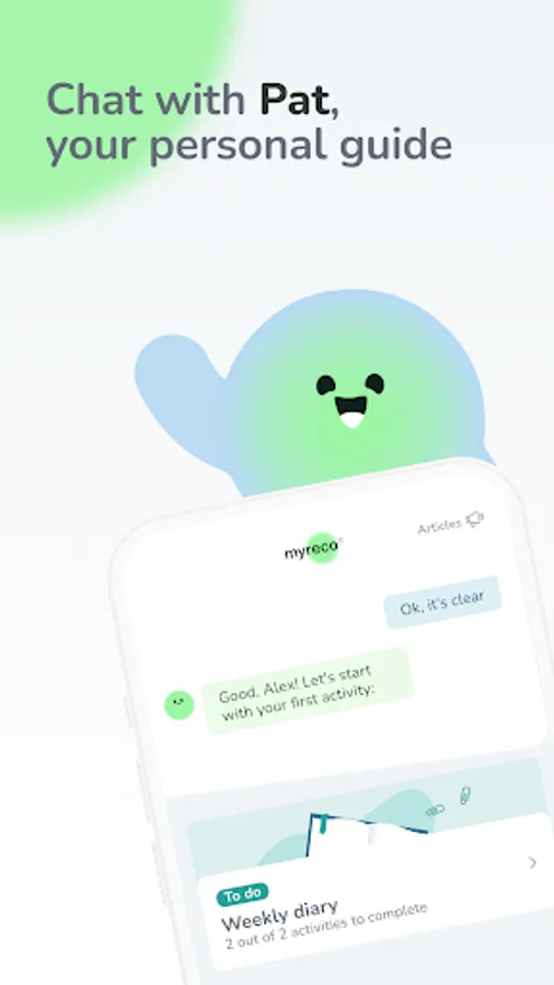 - Chat with Pat and get information about upcoming activities, like questionnaires and medical visits required by the study protocol.