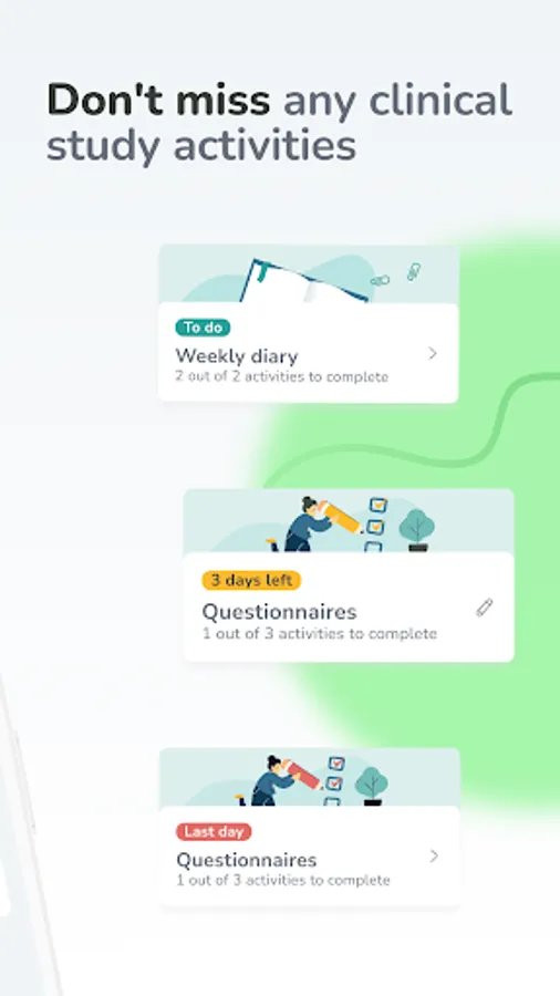 Complete eDiaries, view upcoming study activities, track your progress with ease.
