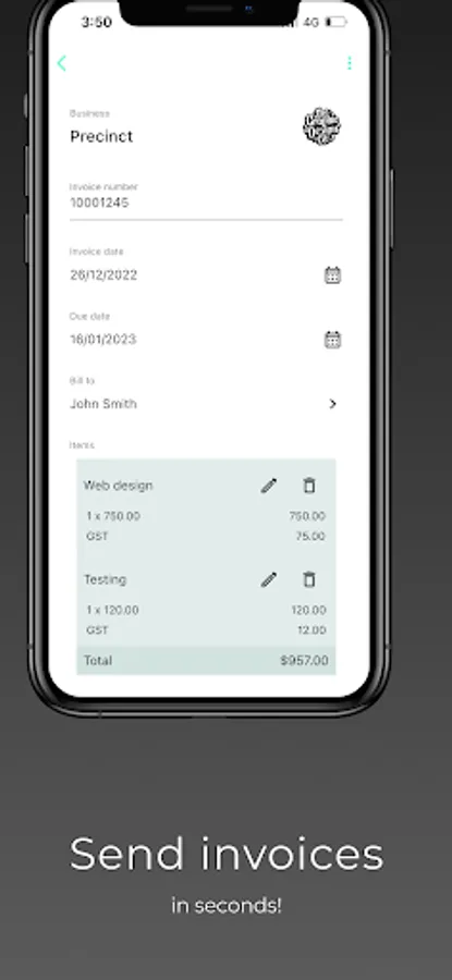 Download the app and invoice on the spot. Win repeat business with fast, secure and professional invoices.