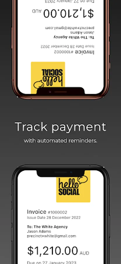 - Create professional, personalised invoices, send and track invoice payments in seconds!