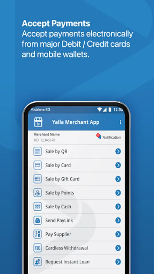 Yalla Merchant App - Virtual POS (VPOS) is a light-weight POS solution to enable merchants accept electronic payments easily from their customers, at a minimal cost, wherever they are.