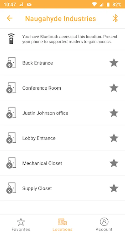 With Bluetooth credentials stored in the ProdataKey app, you can use your phone to unlock doors–either as you approach or by holding your phone near a reader on the door. With additional remote access credentials, you can see the states of doors at a location and unlock a door from anywhere by simply pressing on an icon.