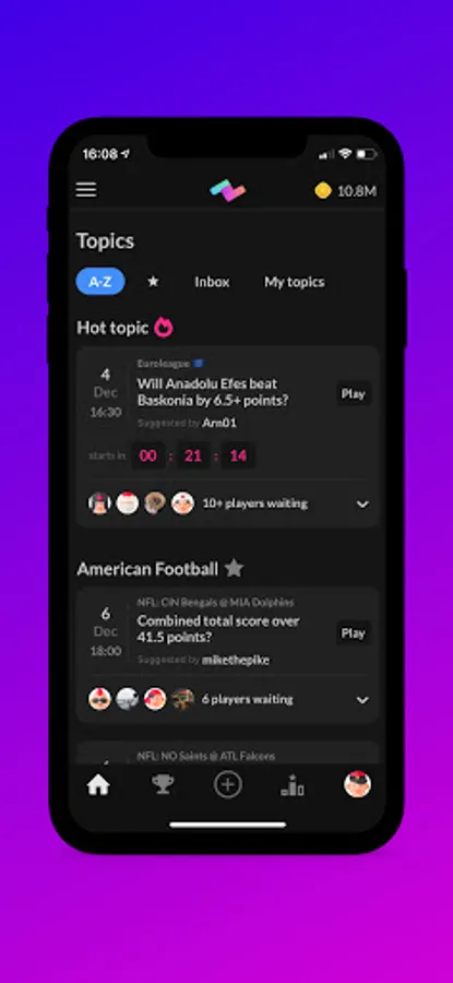 PeerBet doesn't require a credit card. It is therefore a perfect game for people who love to guess the outcome of sports and current affairs, but don't want the associated risk that comes with betting.