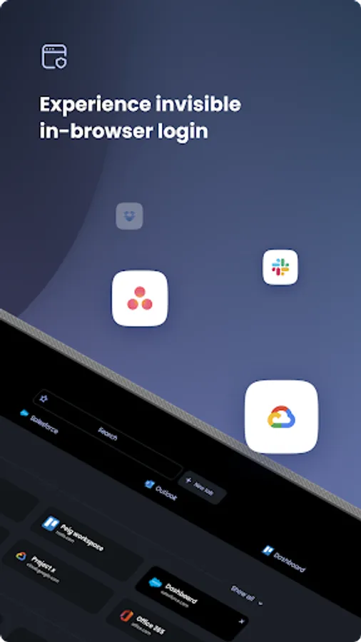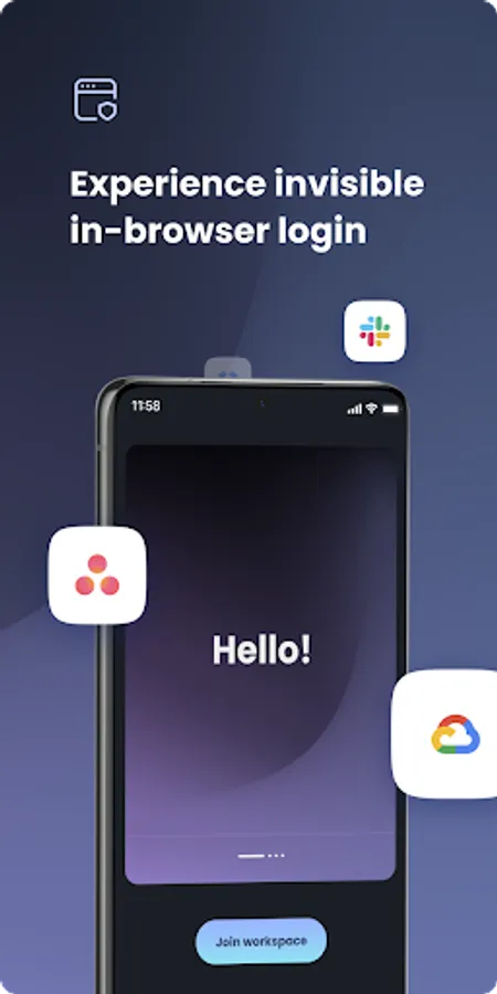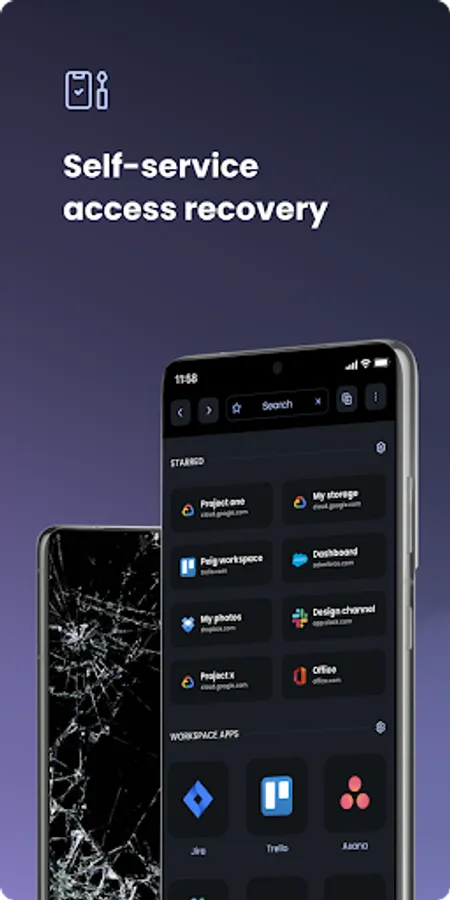 - No passwords (NOR usernames!), OTPs or additional authentication devices are needed to securely access work apps