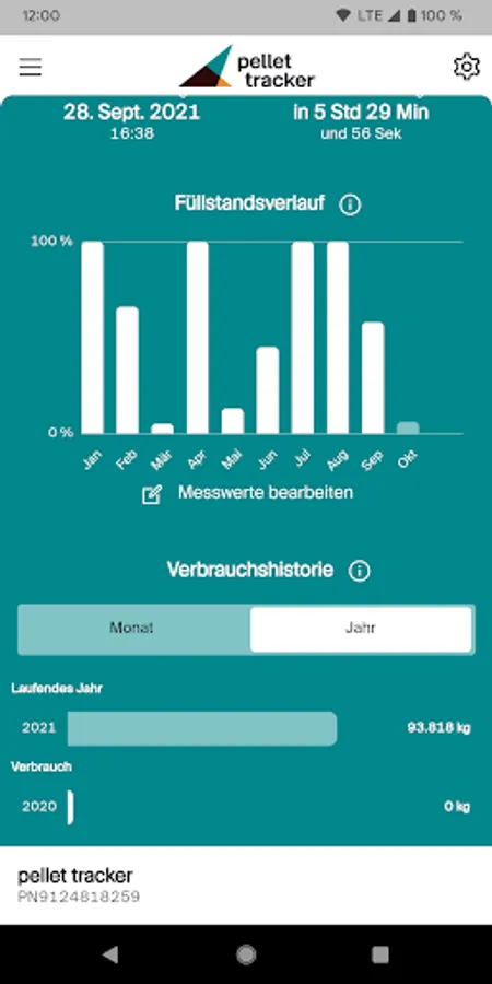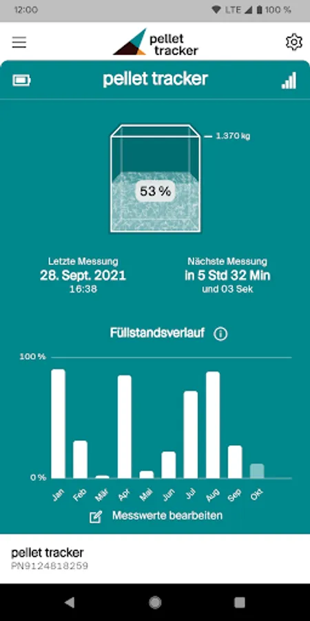 The pellet tracker is the intelligent level meter for your pellet store. With the pellet tracker you never have to think about your next pellet purchase again. With the smart app, you can easily see the fill level.