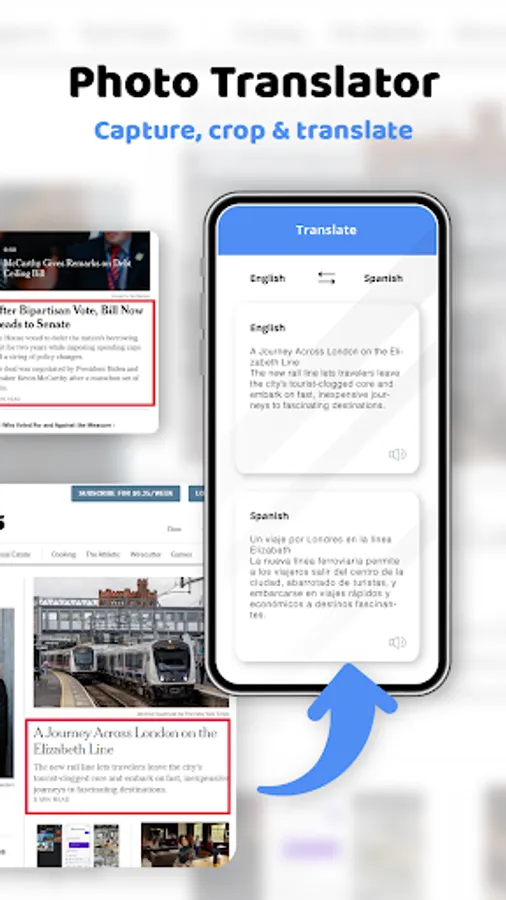 Voice Translator for camera, voice, photos and text. 100% free and for 100+ languages.