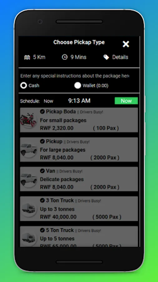 Pickap connects you to the nearest driver at a press of a button. You can pay for your logistics support though cash on delivery but there are cashless options available. This include mobile wallet and card payments