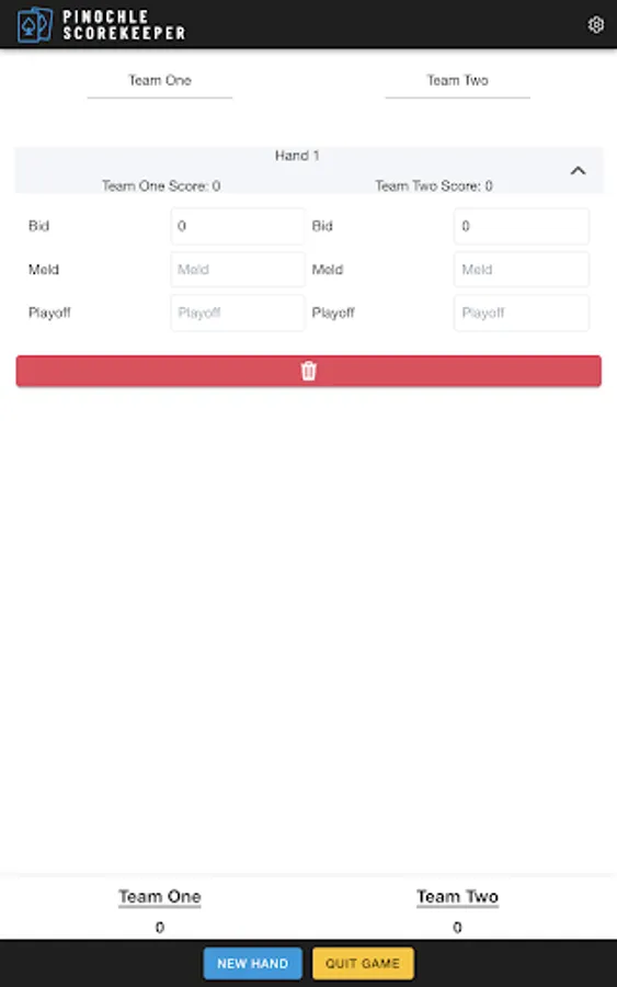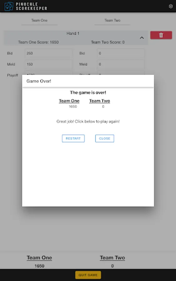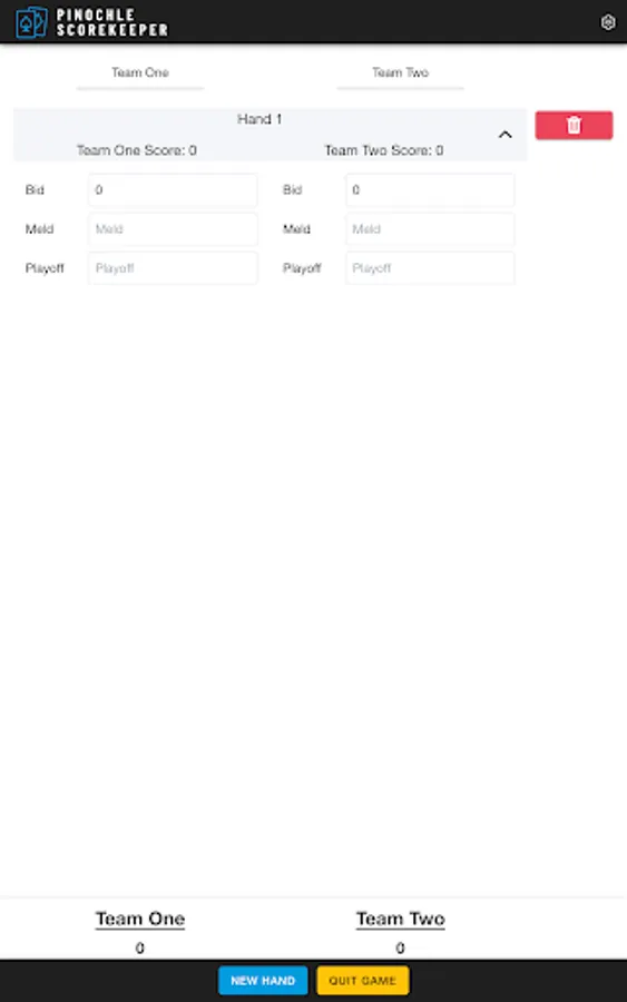This is an application to assist in scorekeeping for the card game, Pinochle.