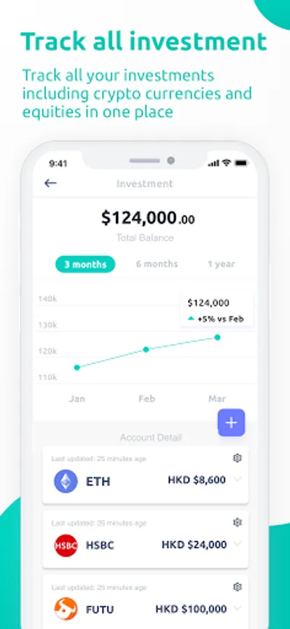 Tell us a bit about yourself by setting your budget and automatically get clarity on where your money goes by linking to one or more of 60+ institutions including bank, e-wallet, reward, MPF accounts and crypto currencies!