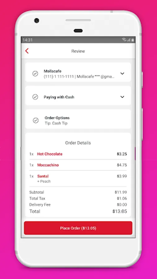 - Pay directly from your phone with card or pay with cash when you'll receive the order