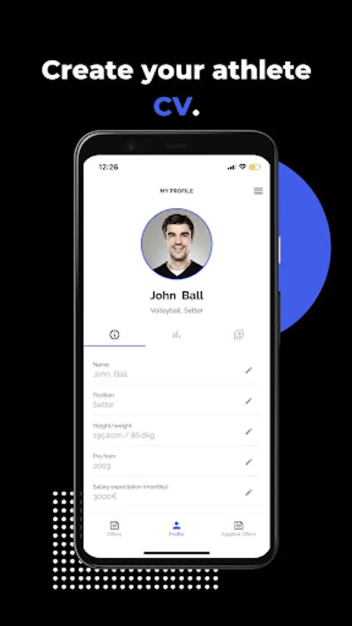 1. Create your profile in minutes. Include statistics, full matches and highlights to increase your visibility