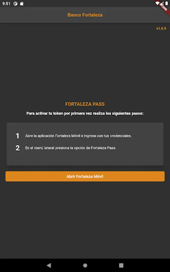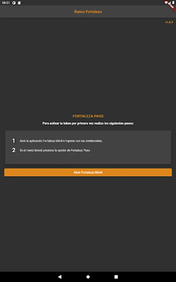 This application allows you to manage a security key associated with your Fortaleza Móvil application with which you can validate the operations you are carrying out, providing you with a new level of security, without additional cost or complications.