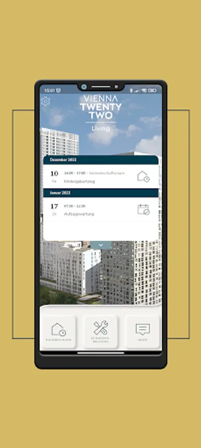 - Damage reports for general areas: This feature enables an uncomplicated damage report (including photo documentation) directly to the property management. In addition, you can call up the current status of damage repairs in the general areas at any time.