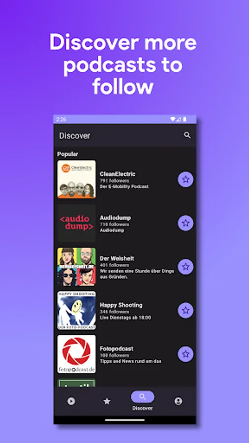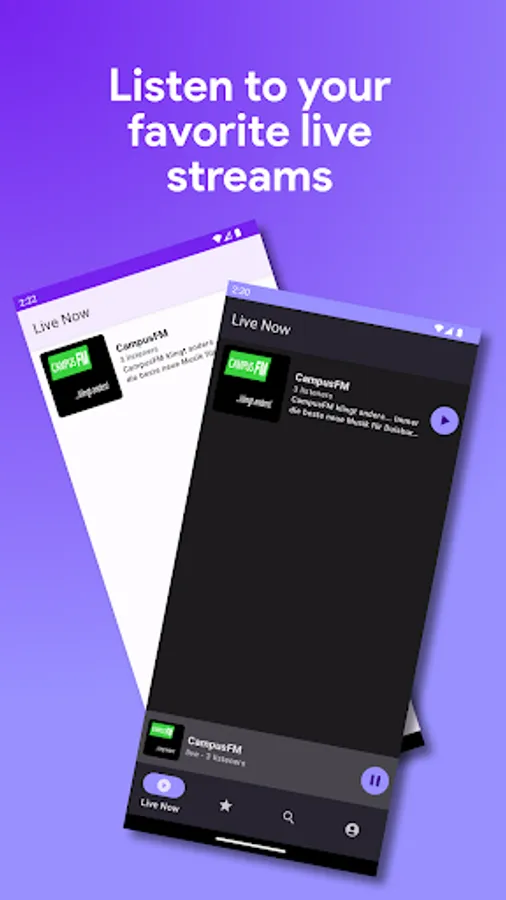 Listen to your favourite Podcasts on the go, wherever your are, live. While cycling, hiking or going by train - never miss a live streaming podcast.