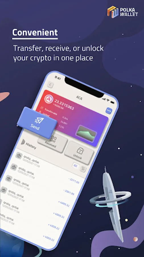 You can send, receive and stake your assets, moreover, you can participate in the online community governance safely and securely with the polkawallet mobile app.