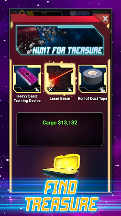 Hunt for Treasure: Find new and rare items here. You get one free search per hour.