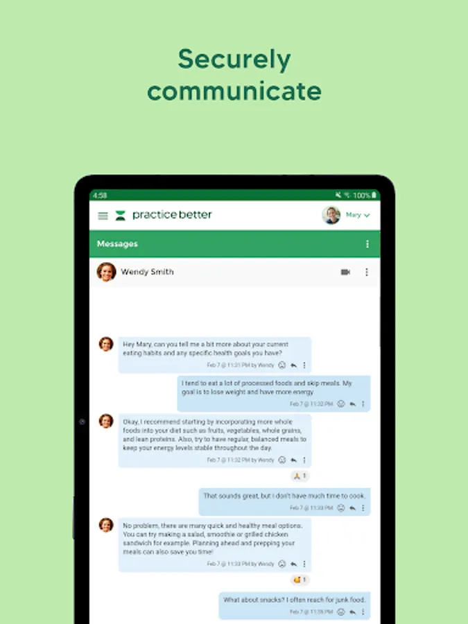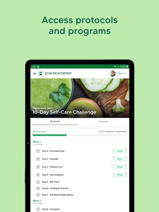 Meet Practice Better - the wellness platform that lets you easily connect with your practitioner or coach. Stay connected with 24/7 access to your provider’s recommendations, programs, resources, and journals to help you reach your health and wellness goals!