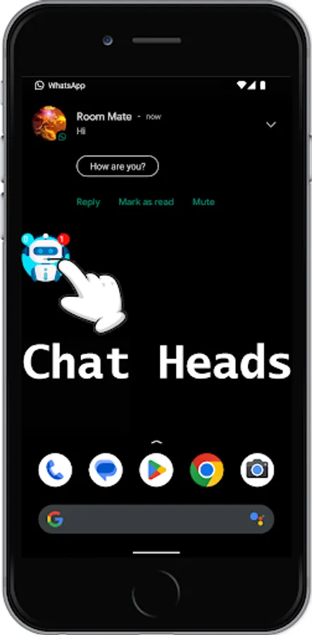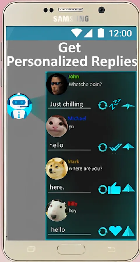 The app is like a normal Chat Head/Bubble app but the replies are learnt by the Bot and then sent to messenger.