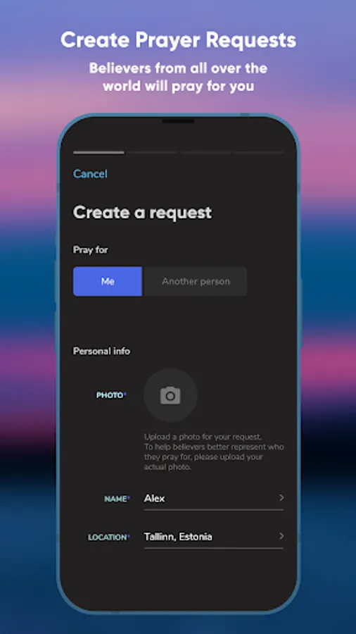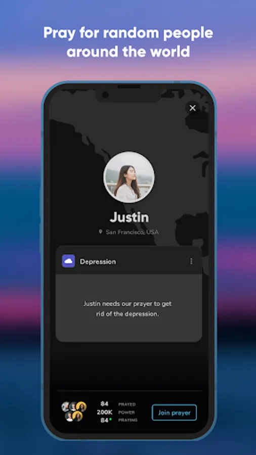 A request gets translated into major languages and awaits those who are ready to pray immediately. A special algorithm distributes believers into a virtual prayer room to assure that all current requests are answered. There are no boundaries and no limitations. All nationalities are united in one prayer. It would all be done at the same time, in a single prayer session, in its' own language or dialect. Prayers from all over the world will release an incredible power of goodness of God! Love, healing and deliverance of people will be manifested in the name of Jesus.