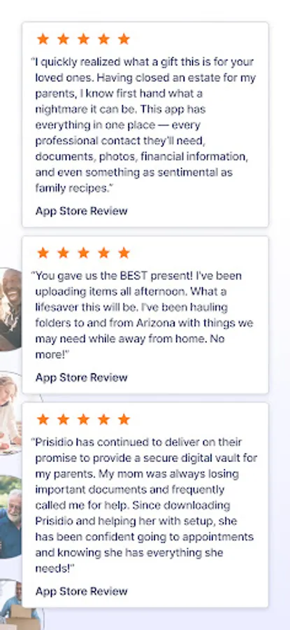 Note that Prisidio powers the “AARP Digital Vault” and if you are an AARP member who’s purchased the AARP Digital Vault this is the application you need to install to access your vault from your phone.