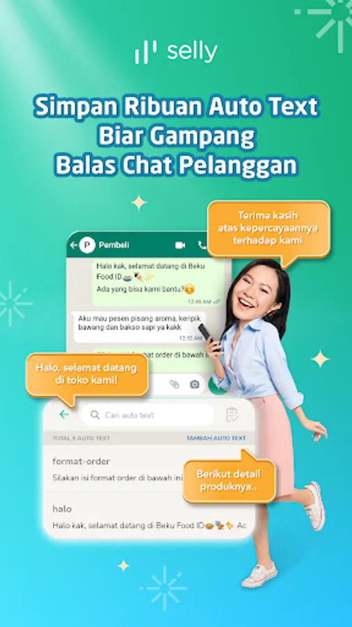 Selly is a keyboard and practical application that will help you sell online and serve customers via chat more easily. As the first online selling application in Indonesia, Selly has helped more than 1,000,000 sales transactions for online sellers every month!