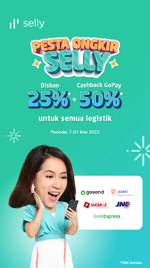 Selly has also worked with various logistics and online payments partners, so you can directly manage all online sales transactions for your store straight from Selly - Keyboard Application for Online Selling. Get special promos such as discounts on shipping services and cashback that will make your customers happy!