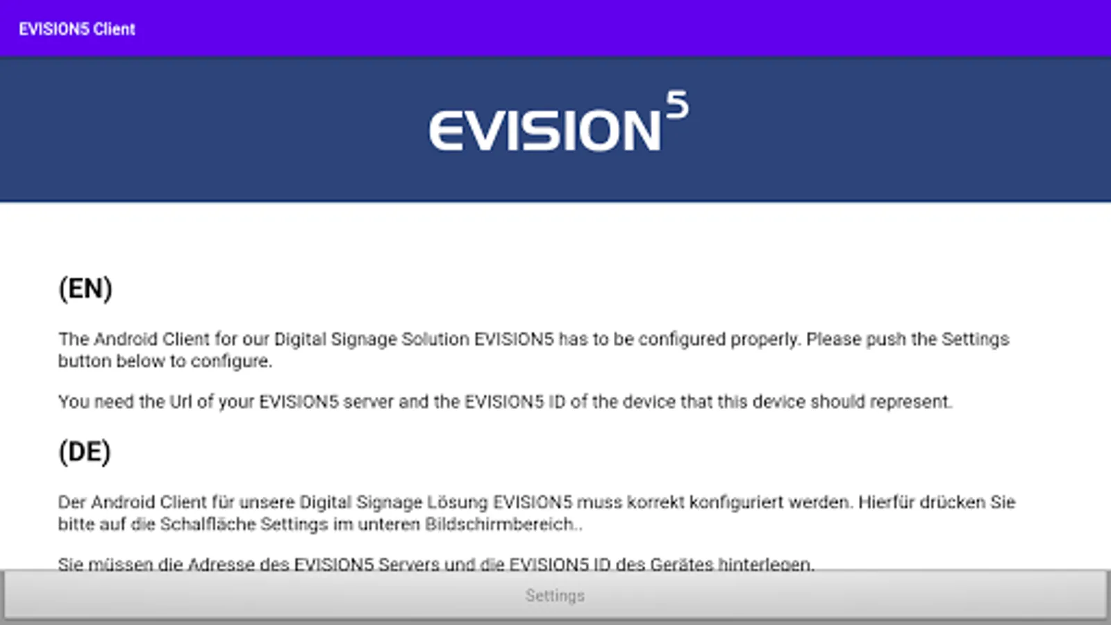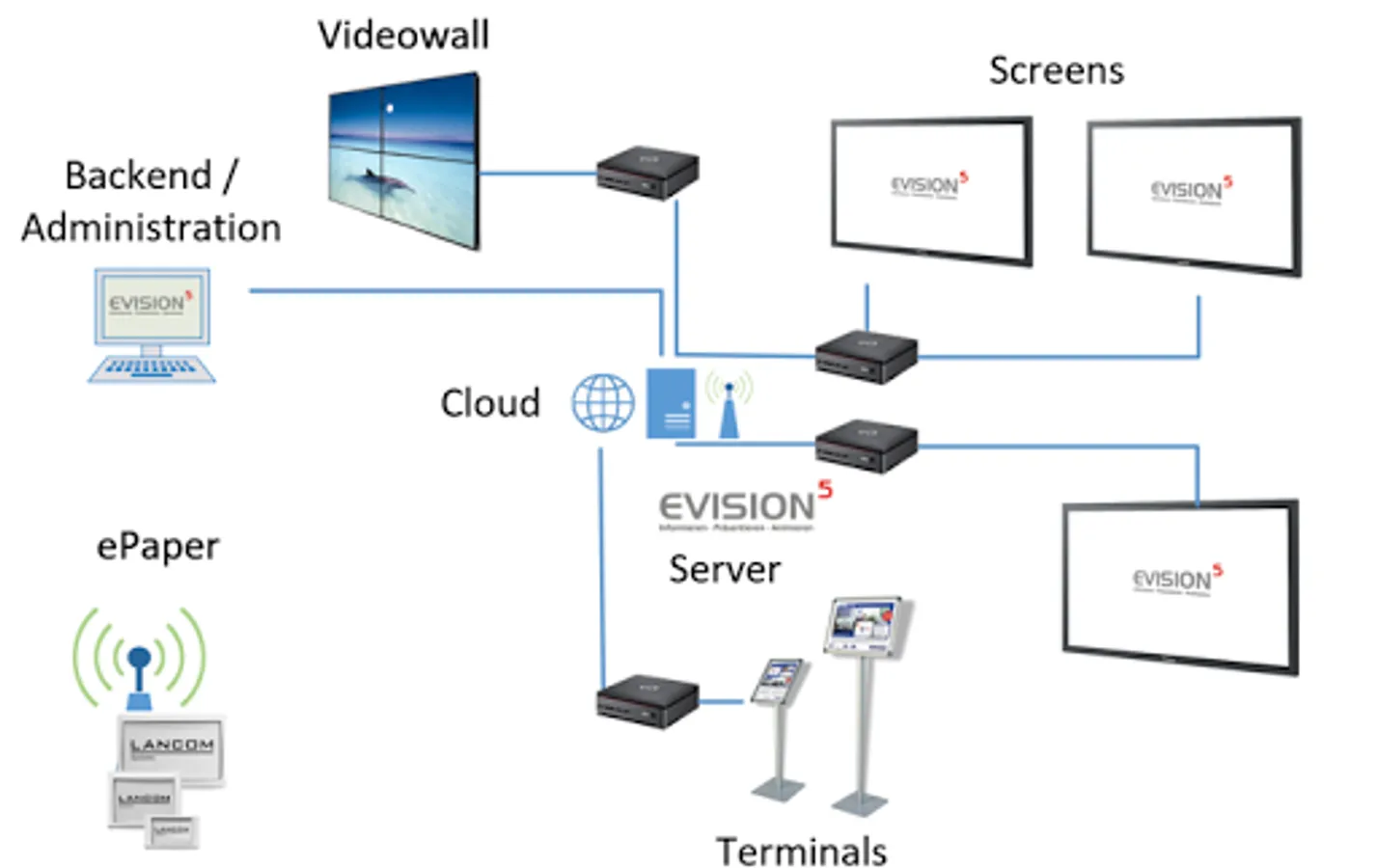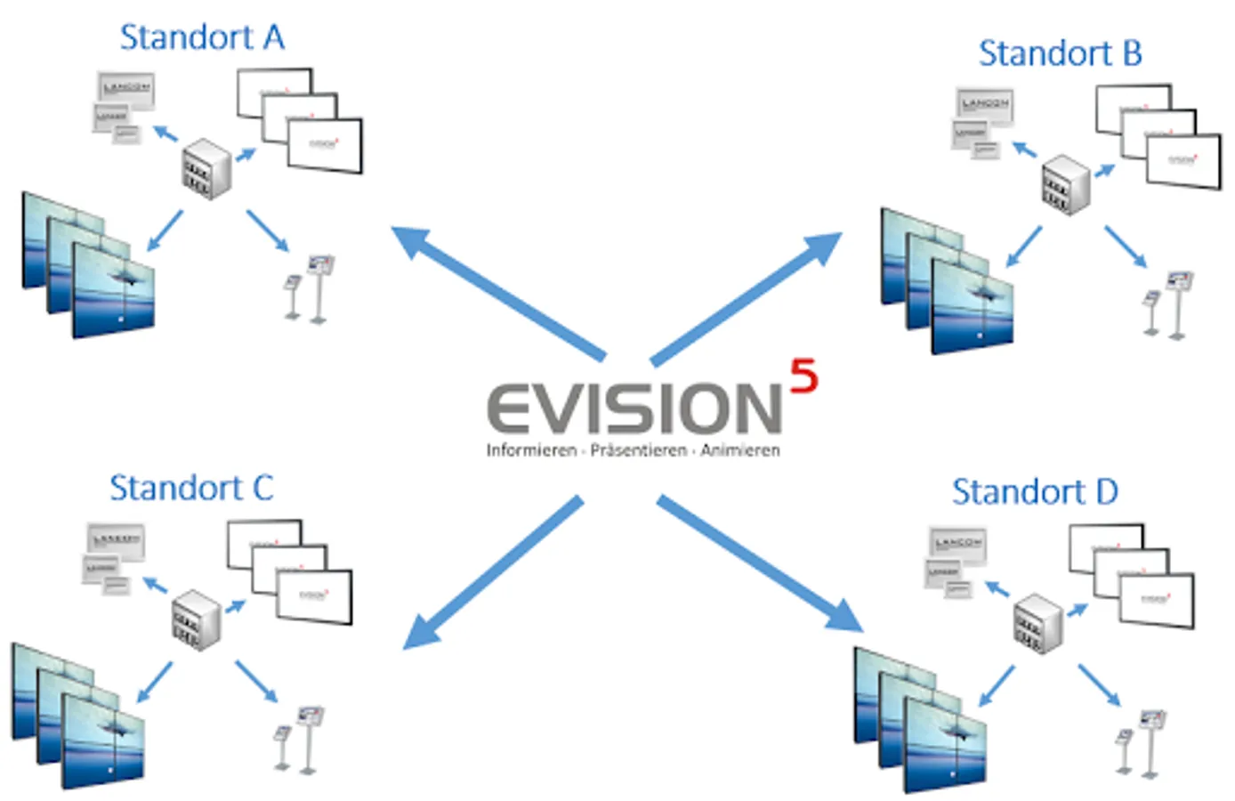 EVISION5 is the flexible Digital Signage Solution to support enterprise needs.