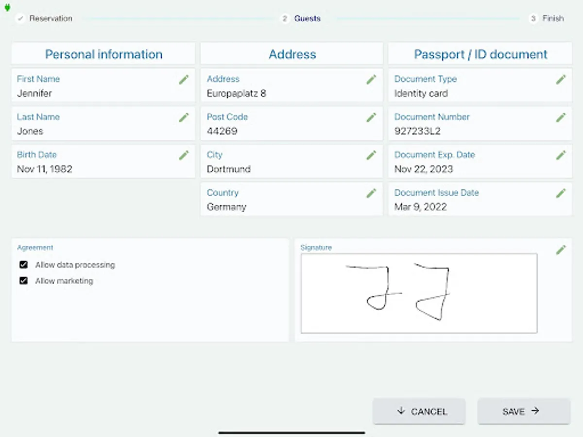 The profile information is automatically updated in real-time directly to your hotel software (PMS) – no manual data entry and zero transcribing errors.