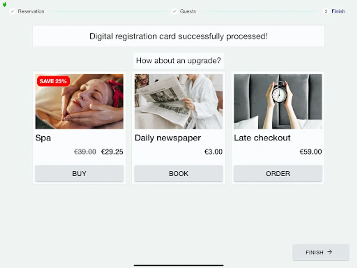• Reduces contact between staff and guests. No handing over of pens, paper and documents
