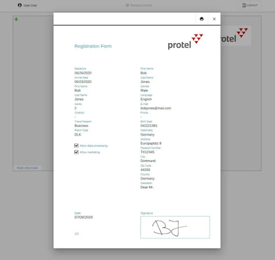 100% legal compliance in all countries* – the digital registration card is safely stored with the guest’s signature and can be retrieved and printed at any time.