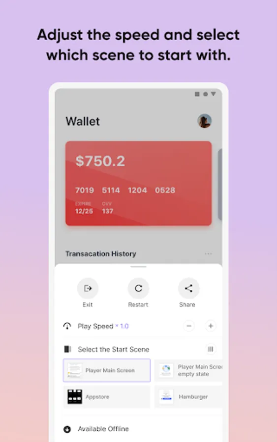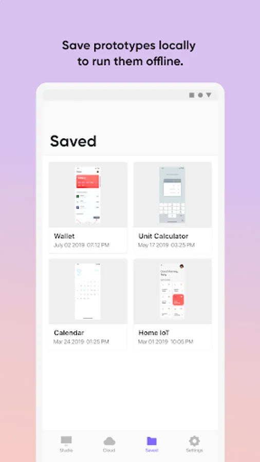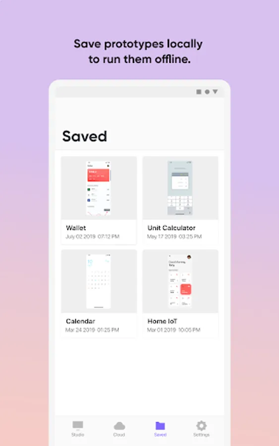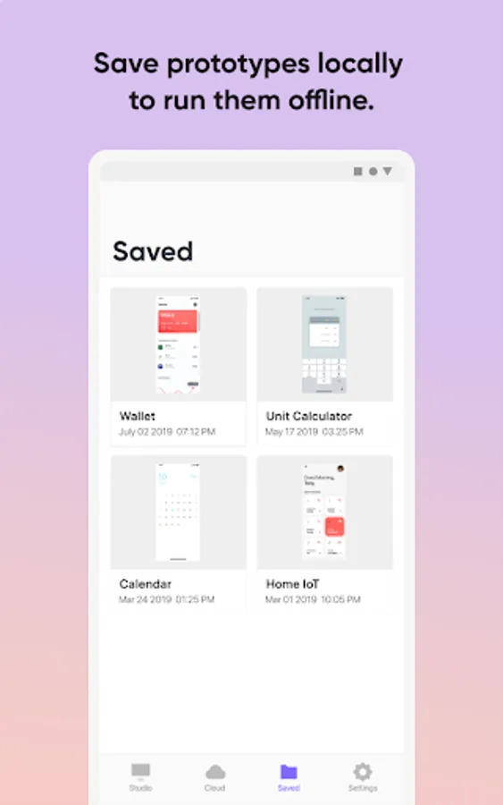 ProtoPie Player is a free companion app to ProtoPie Studio, a code-free prototyping tool on macOS & Windows. View, experience, and test prototypes on Android easily. Access prototypes in the cloud, save prototypes locally, and more—all from your Android device.