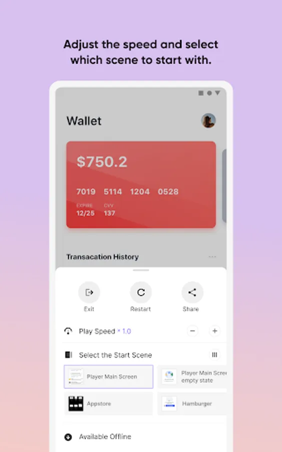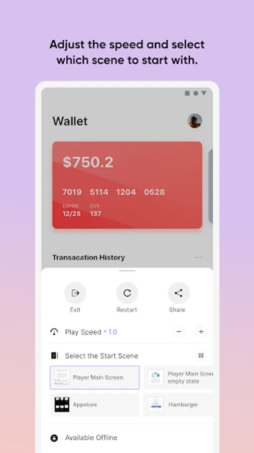 - Control the play speed: slow down the prototype to experience the interactions with more detail.