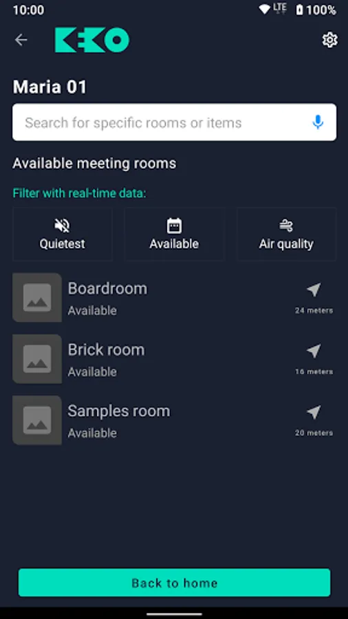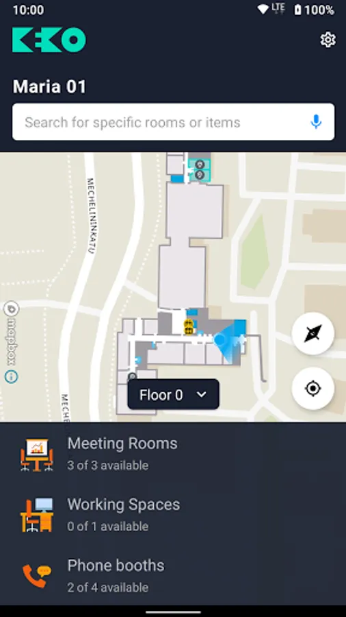 KEKO Wayfinder is an experience driven indoor navigation app that uses real-time building data to recommend the optimal rooms and workspaces for your needs. Through sensors in the building, the app monitors occupancy, air quality and noise level data across theMaria01 Startup Campus. The app utilizes location information to display your real-time position. In addition to GPS data, the application utilizes Bluetooth Low Energy beacons and the phone's internal sensors (e.g. accelerometer) for calculating your current location. Indoor position covers main public areas at the Maria01 startup campus.