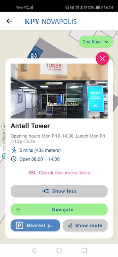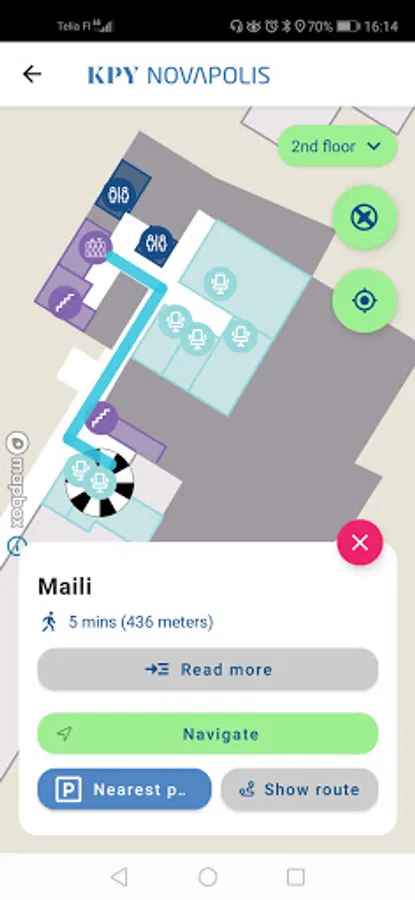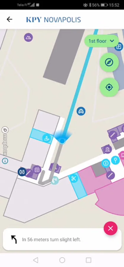 KPY Novapolis map application works as your guide on the Microkatu campus. The app caters for both campus visitors and its regular users. You can use the application to search e.g. various campus services, meeting rooms, information points and businesses based on the campus. The application gives you detailed navigation instructions from your current location to the destination or to the right entrance. You can search for the route already from home, in which case the application will also show the car park closest to your destination.