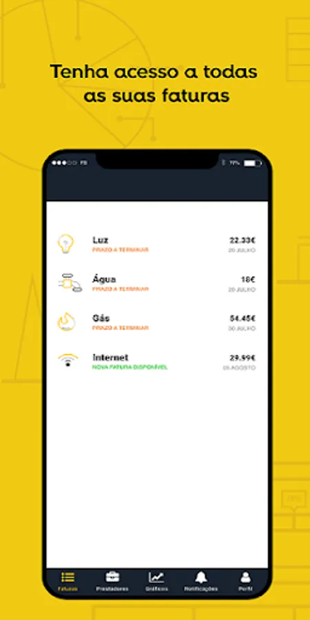 Pay your bills and track your expenses at any time of the day, simply, quickly and safely.