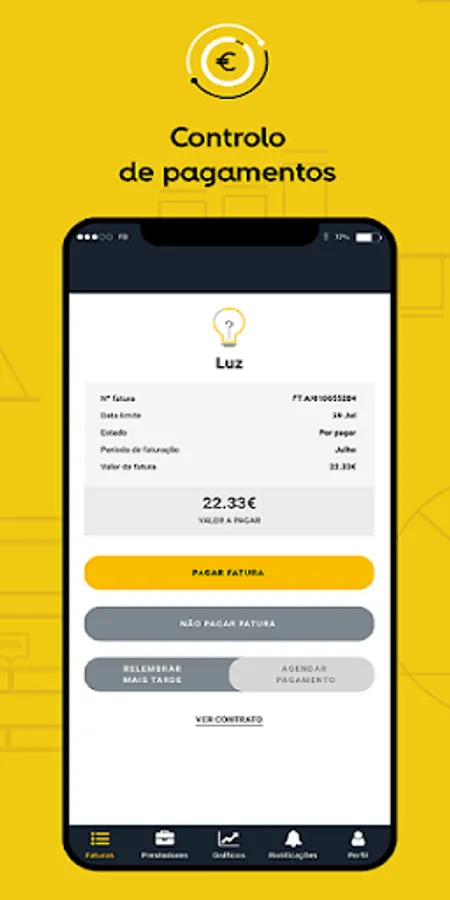 You can schedule or make payments for new invoices, set alerts to leave no unpaid invoices, view your expense history, access invoices for the past 6 months, view App transactions and notifications, add service provider contracts, and set up the preferred means of payment for each contract.