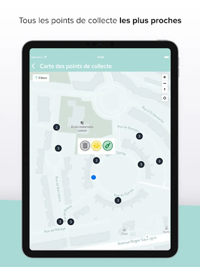 The application gives you sorting rules and instructions for glass, bio-waste, household waste and packaging and identifies the collection points closest to you thanks to geolocation. You may find out where to donate, how to compost, and what to do with batteries, medicine, etc. Finally, you will no longer have any doubts about the opening hours of recycling centers: the right information is in the app!