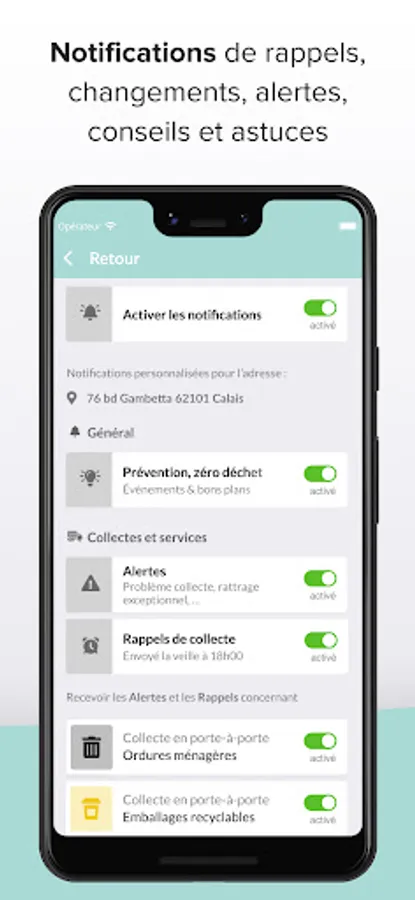 Receive reminder notifications when you leave your bins, changes concerning you, but also advice, tips and tricks to reduce your waste!