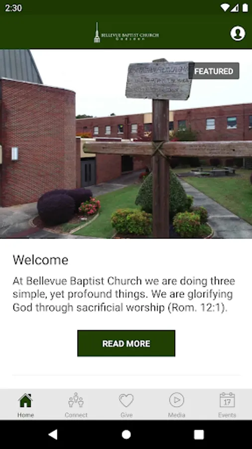 At Bellevue Baptist Church we are doing three simple, yet profound things. We are glorifying God through sacrificial worship (Rom. 12:1). We are growing believers through discipleship and ministry (Mt. 16:24; II Timothy 2:2). We are going with the gospel to the world through personal evangelism and missions (Matthew 28:18-20). Take some time to browse the app and prayerfully consider joining us in our mission.