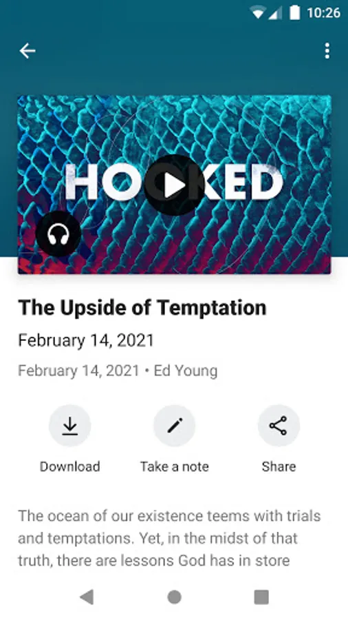 This app will help you stay connected with the day-to-day life of our church. With this app you can: watch or listen to past messages; stay up to date with push notifications; share your favorite messages via Twitter, Facebook, or email; and download messages for offline listening.