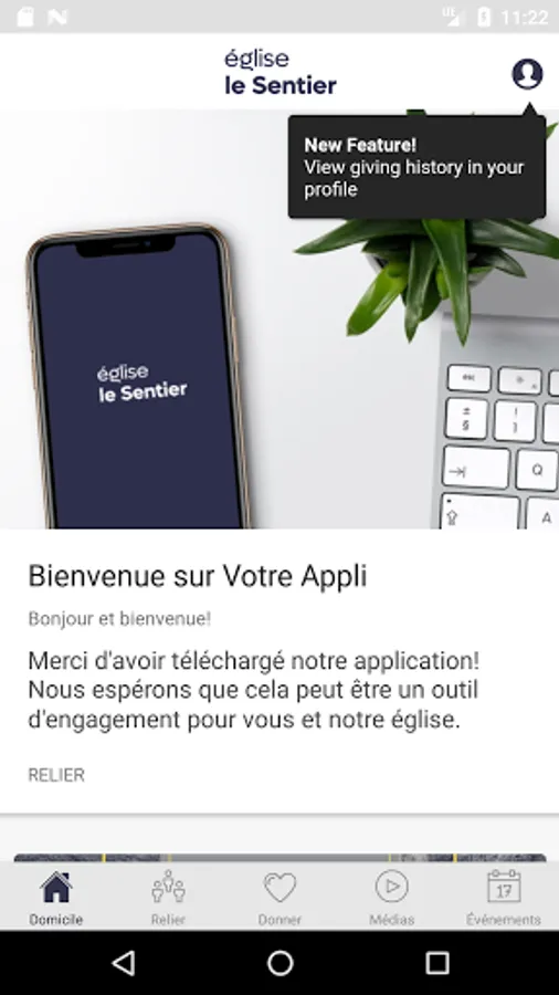 Connect and engage with the Eglise le Sentier app! You will be able to view upcoming events, give, read the bible, and more!