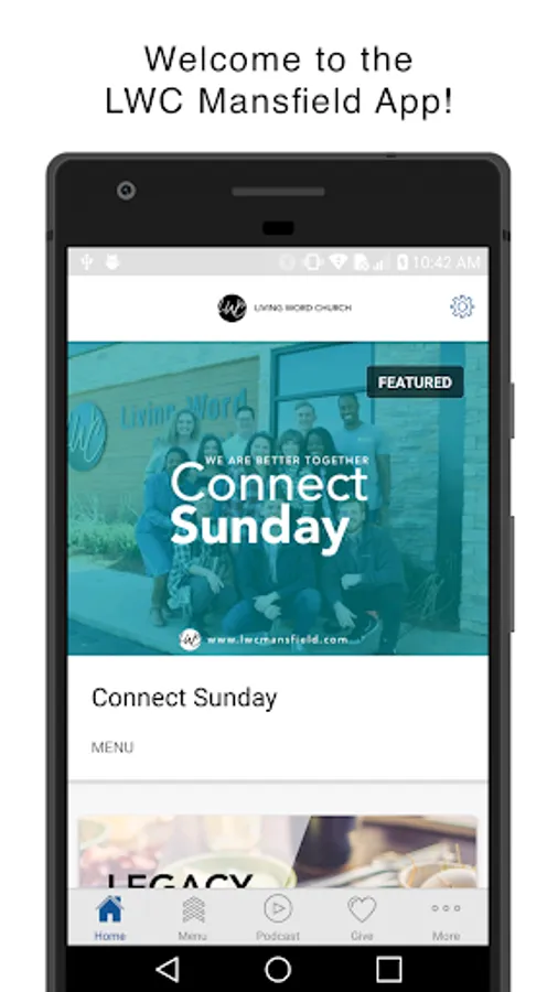 Connect and engage with the LWC Mansfield app! You will be able to view upcoming events, give, read the bible, and more!