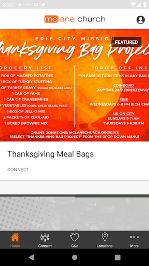 With our app, you will be able to view upcoming events, give, read the bible, and more.