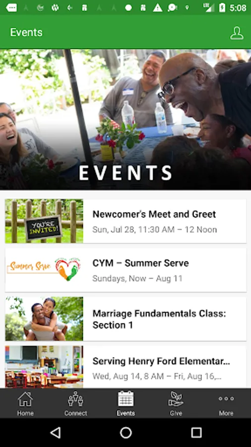 Sundays - Use the digital Connection Card, Events, Give, Bible and Notes (create and share)!