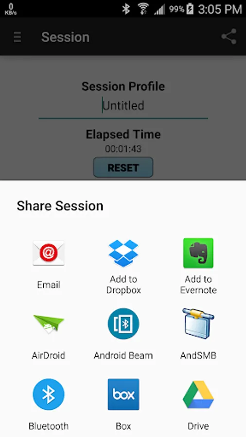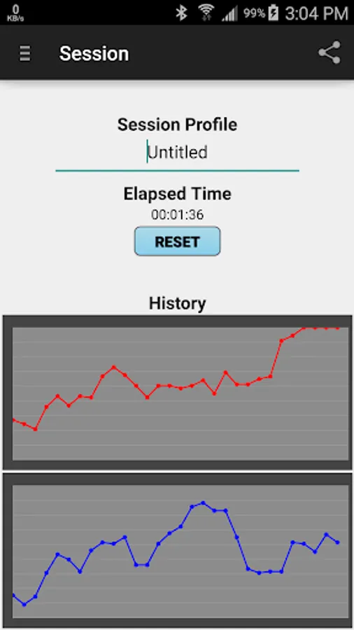 When finished, all of the data collected during your session can be exported to a CSV file for charting in popular spreadsheet software such as Microsoft Excel, Apple Numbers, and LibreOffice Calc by sharing to cloud services such as Dropbox, Google Drive, Box, or email.